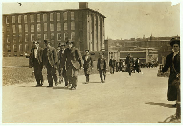Amoskeag_Mill_Workers_Noon_1909